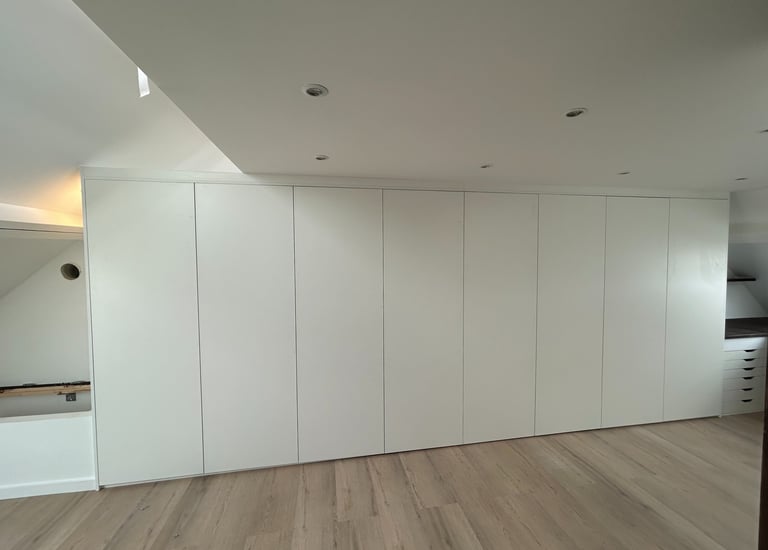 Nous avons entièrement repensé cette suite parentale pour en faire un véritable cocon, digne des plus belles chambres d’hôtel, alliant confort, élégance et praticité. Chambre, salle de bain et dressing ont été réorganisés pour offrir une circulation fluide et des volumes optimisés. Chaque meuble, dessiné et fabriqué sur mesure, s’intègre parfaitement à l’espace, créant une harmonie visuelle et une ambiance raffinée, pensée dans les moindres détails.